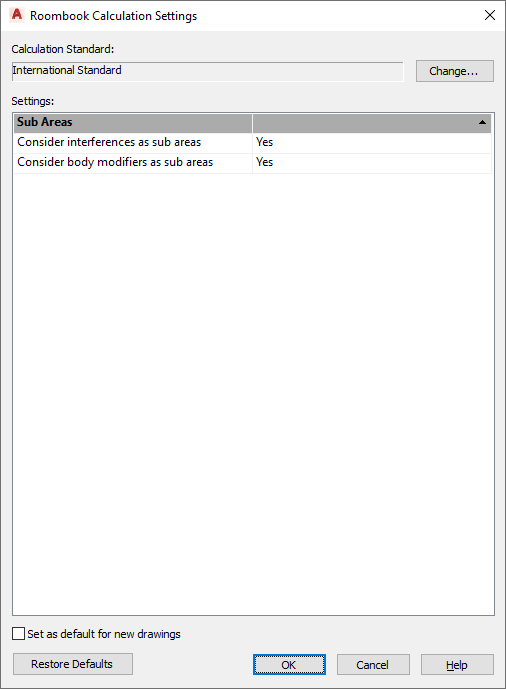 In this field is shown the current calculation standard. In order to change it, click Change.