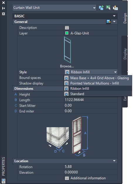 Use this procedure to select a different style for the curtain wall unit.