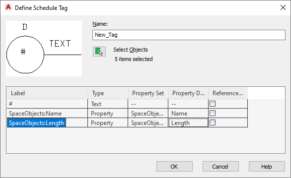 Use this procedure to create a schedule tag that captures and displays property set data for a particular object in your drawing.