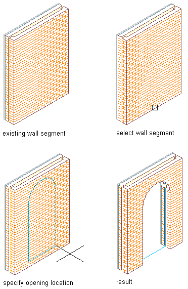 place an opening in a wall select the wall, and specify an insertion point along the wall.