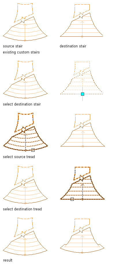 Use this procedure to modify a custom stair tread by matching an existing tread on another custom stair.