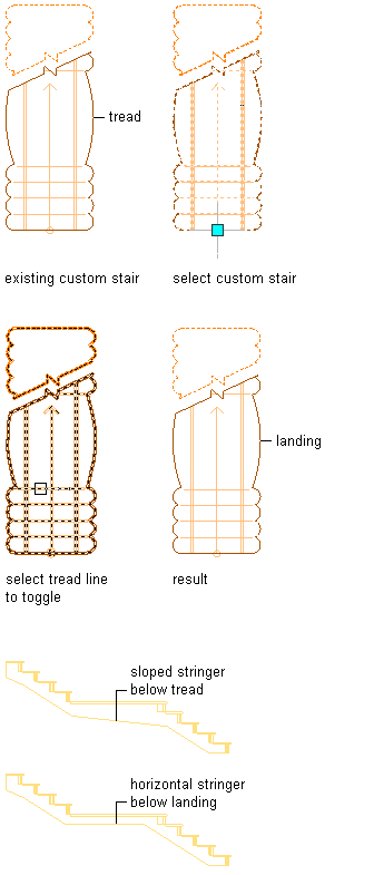 Use this procedure to convert a custom stair tread to a landing, or convert a custom stair landing to a tread.