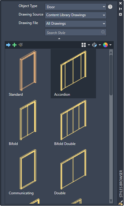 Searches object styles, imports them into the current drawing, and starts the relevant command to start drawing with the selected object.