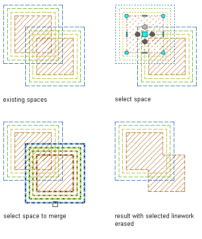 If the space boundaries of the merging spaces are determined by different methods, the method used for the first selected space is used for the resulting space.