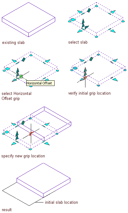 Changing the horizontal offset of a slab using the Horizontal Offset grip