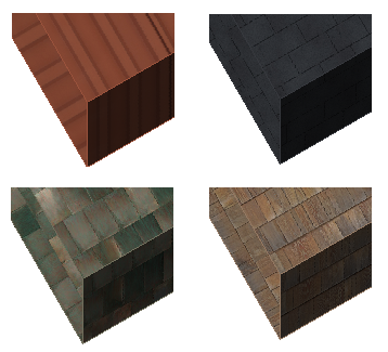 Roof slabs with assigned materials