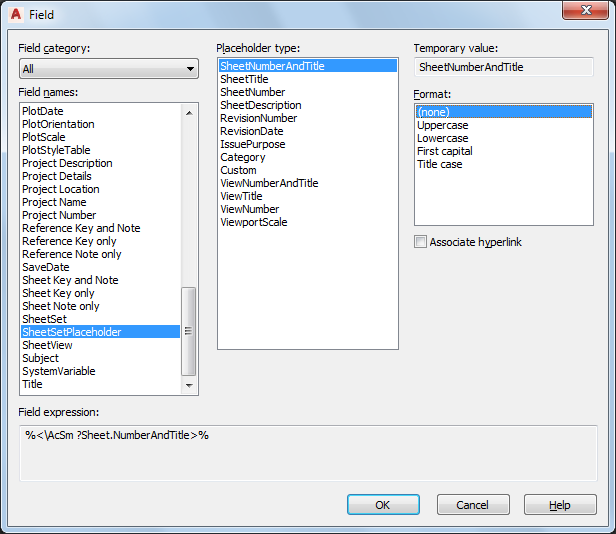Note: An attribute can contain only one sheet set field. If you want to create a callout line that reads, for example, View Number - View Title, you must define two separate attributes.