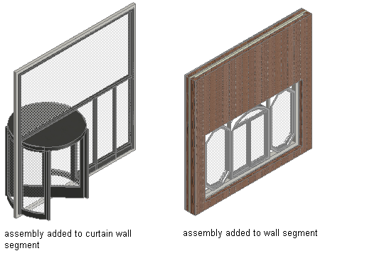 Door and window assemblies provide a grid or framework for inserting objects such as windows and doors. With this framework, you can create complex window and door assemblies, which can then be inserted in standard walls or used as repeated elements in curtain walls.