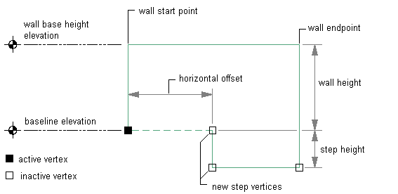 Use this procedure to add a step to the roof line or the floor line of a wall. You can also add a step on the Roof/Floor Line worksheet on the Properties palette.