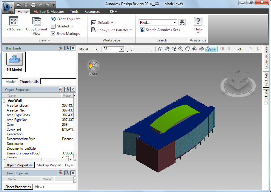 You can publish your DWG files as 2D or 3D model with the included property set data to DWF or DWFx. When these files are viewed with Autodesk Design Review, users can select components that represent objects and display the object information on the Object Properties palette.