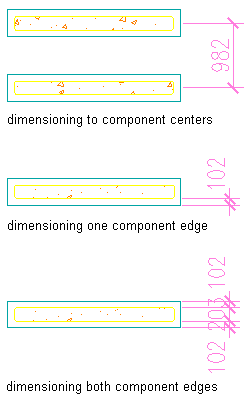 The dimensioning of wall components can be specified in 2 different locations: in the wall style and in the AEC dimension style.