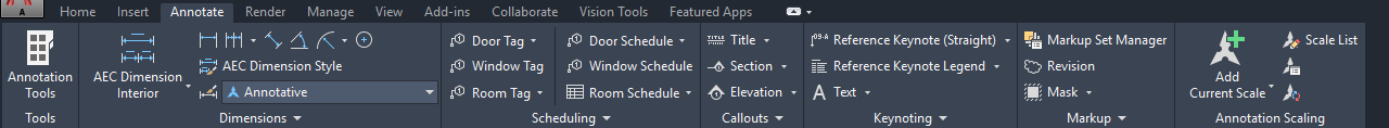 The Annotate tab contains commands that help you to mark up your drawing files.