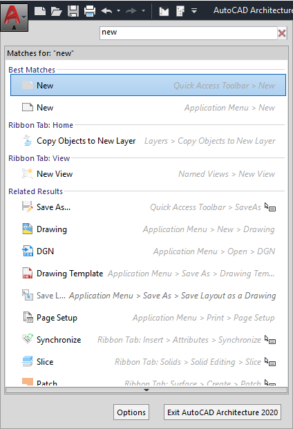 n addition to instances of the search string, the results include the contents of the associated tooltip and any search tags you have defined in the Customize User Interface editor (CUI).
