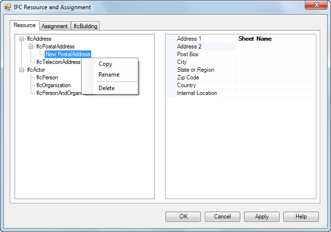 In the IFC Resource and Assignment dialog box, on the Resource tab, select the IFC resource instance you want to modify.