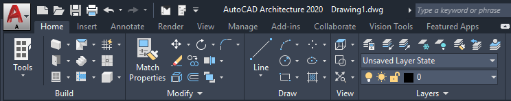 Similarly to Microsoft Office, AutoCAD Architecture 2027 toolset uses the ribbon as the central access point for commands. The ribbon contains a number of tabs on which commands are grouped according to conceptual task types or selected objects.