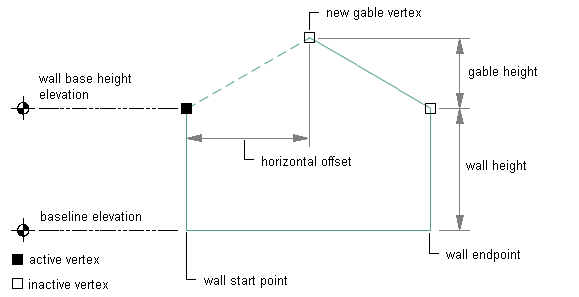 Use this procedure to add a gable to the roof line of a wall. You can also add a gable on the Roof/Floor Line worksheet on the Properties palette.
