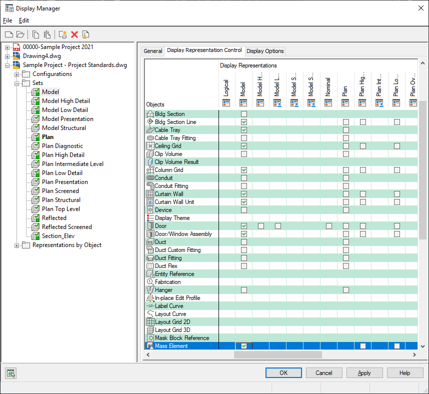 Use this procedure to add or remove display representations in a display set. Changes made to a display set affect every display configuration that uses the display set.