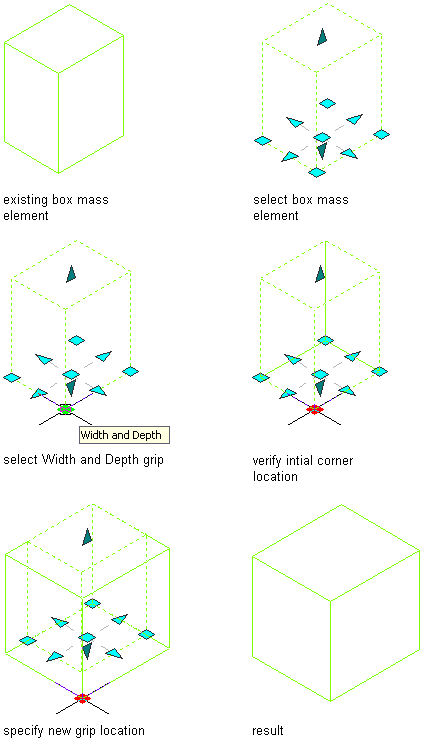2. Click a corner (Width and Depth) grip, and move it to the new location, or enter a value and press Enter.