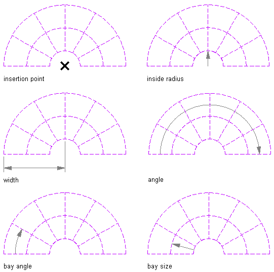 - Specify an insertion point in the drawing for the center of the radial layout grid.