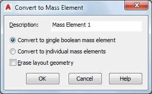 - To convert all of the selected objects into one mass element, select Convert to single boolean mass element.