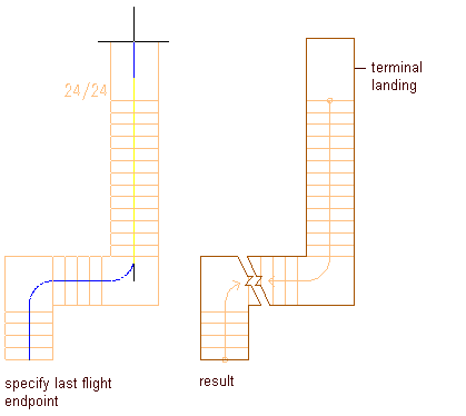 Note: If you specified Landing for Terminate with, the last point for the stair beyond the final riser defines the end of the landing.