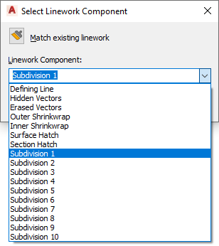 5. Select the component you want to put the lines on. For example, if you want to make the lines invisible, select Erased Vectors for Linework Component.