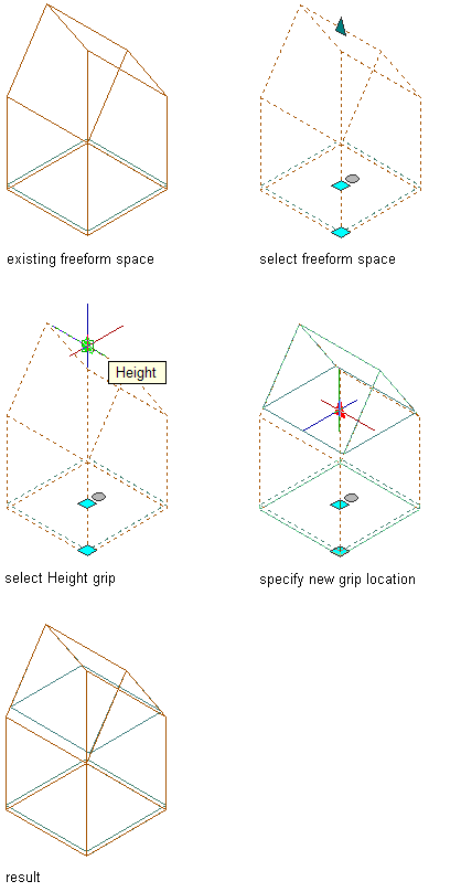 Select a 3D freeform space for which you want to change the overall height.