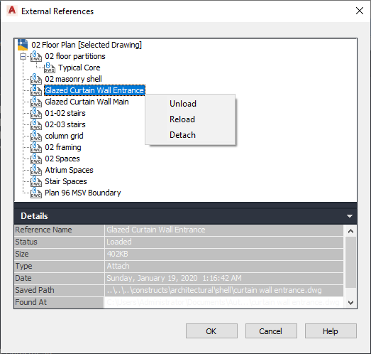 - Saved Path displays the saved path, if any, that is used to locate the xref. This path can be a full (absolute) path or a relative (partially specified) path.