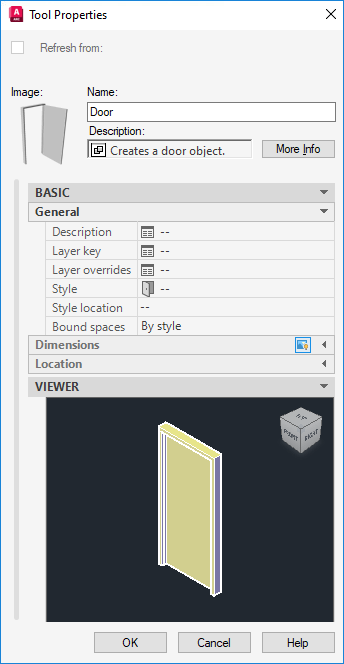 When the cross-platform graphics system is enabled, Object Viewer displays only supported visual styles in the visual style dropdown list. Turn off the cross-platform graphics system with AECOBJVWRGSMODE to work with the complete set of visual styles.