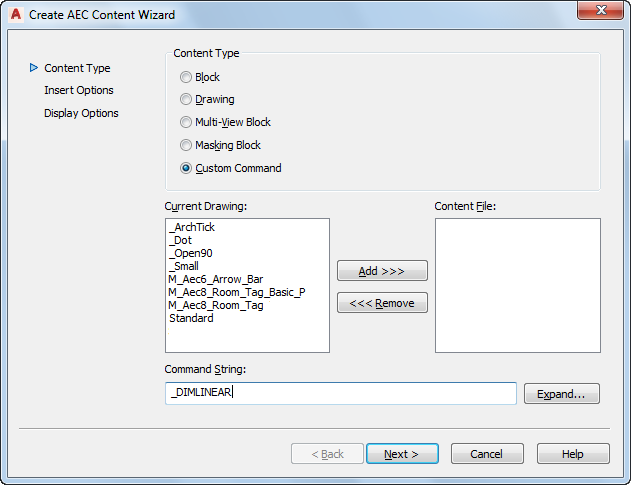 - If you create tools for standard AutoCAD dimensions, use the AEC Content Wizard to do so. That way you can use the Custom Command option and use layer keys to make sure that the dimensions go to the correct layer.