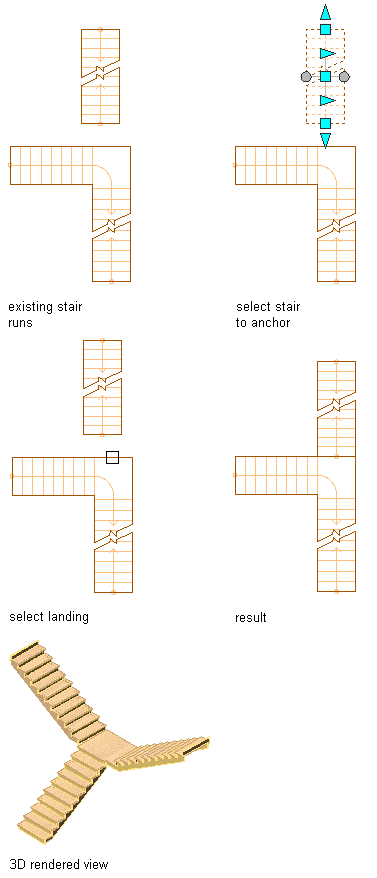 Use this procedure to anchor a stair or other AEC object to an existing landing.