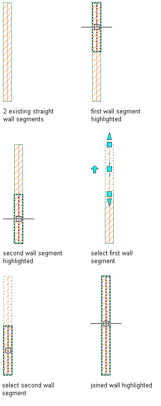 The following illustration shows joining 2 straight wall segments after first highlighting each separate segment.
