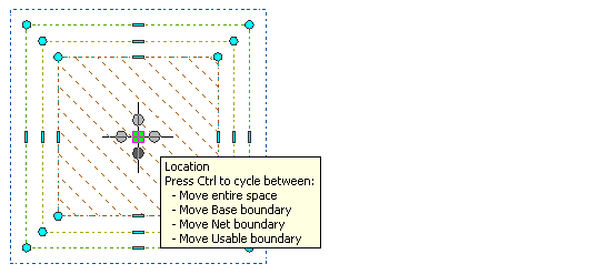 | move the gross boundary of the space | click and hold the location grip, and press Ctrl 4 times to switch to Move gross boundary mode. Then move the gross boundary to the desired location, and click to release it. |