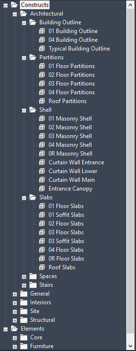 Drawing Explorer of Constructs tab fully expanded