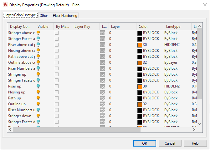 6. Make changes to the display of stair components as needed, then click OK twice.