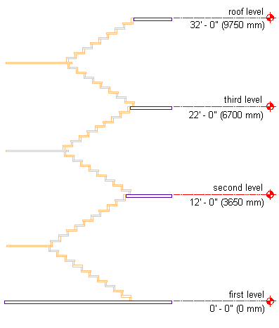 The following illustration shows how the levels should appear in an elevation view: