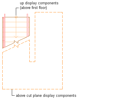 9. The up display components above the first floor are displayed, as are the above cut plane display components, in outline with a dashed linetype.