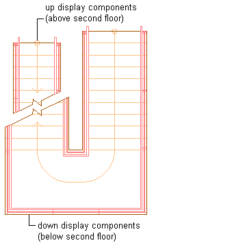 There are components to support the representation of stair components above the cut plane elevation so that the down stair components are only used to display the stair components that occur below the current level.