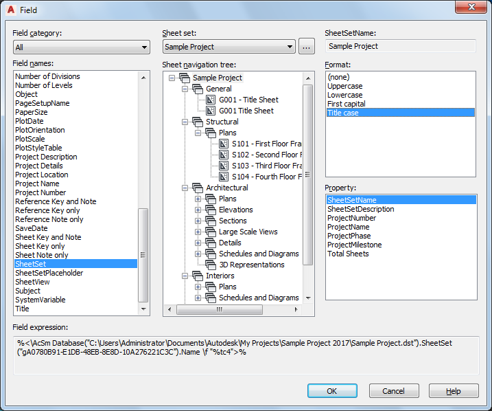 insert a sheet set field into a property set definition see To Insert Fields in Property Set Definitions.