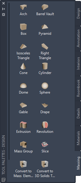 Tool palette containing massing tools