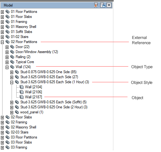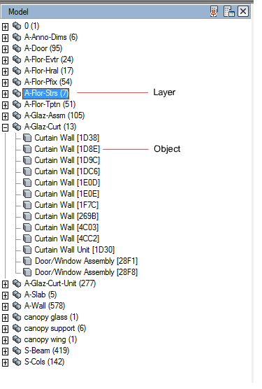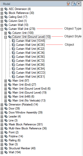 As shown in the following examples, you can specify how property data is organized when exporting property set data from a DWG file to a DWF, DWFx, or PDF file. This capability can be helpful when exporting large drawings with many object properties.