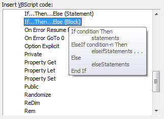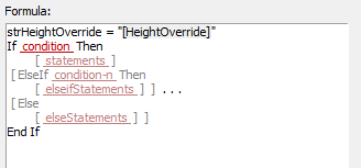 After you add VBScript code to the formula, red or gray text may be inserted to help construct the formula. Red indicates fields where additional code must be added. To remove a red field, select it, and enter text, insert a property definition, or insert other VBScript code.