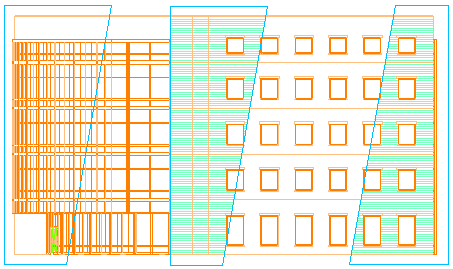 If the view direction in the active viewport is changed to Front, the objects are shown using the display representations in the Section_Elev display set. This is also true when the view direction in the active viewport is changed to Right, Left, or Back.