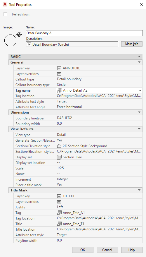 | Boundary linetype | Detail Boundary | Defines the linetype of the detail boundary. |