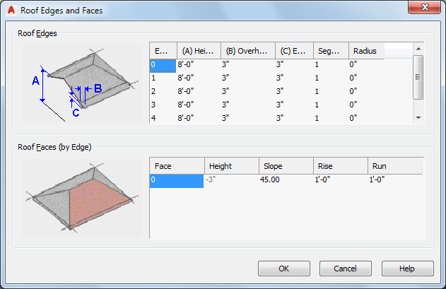 remove a roof face select the Face column number, and press Delete.