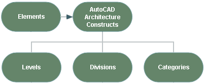 Constructs are the main building blocks or base files of the building model. A construct can contain referenced elements and building objects, such as walls, roofs, and doors. It can also contain more abstract information, like structural grids, building outlines, and footpaths. After creating constructs, you can create different views of your building data. A view might contain the framing constructs for floors 1–4, the foundation construct, and the column grid construct. Or, a view of the first floor might include the partition walls of the first floor, the framing of the first floor, and the shell components of the building.