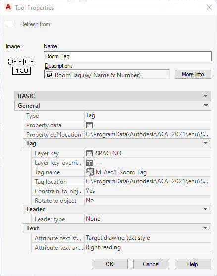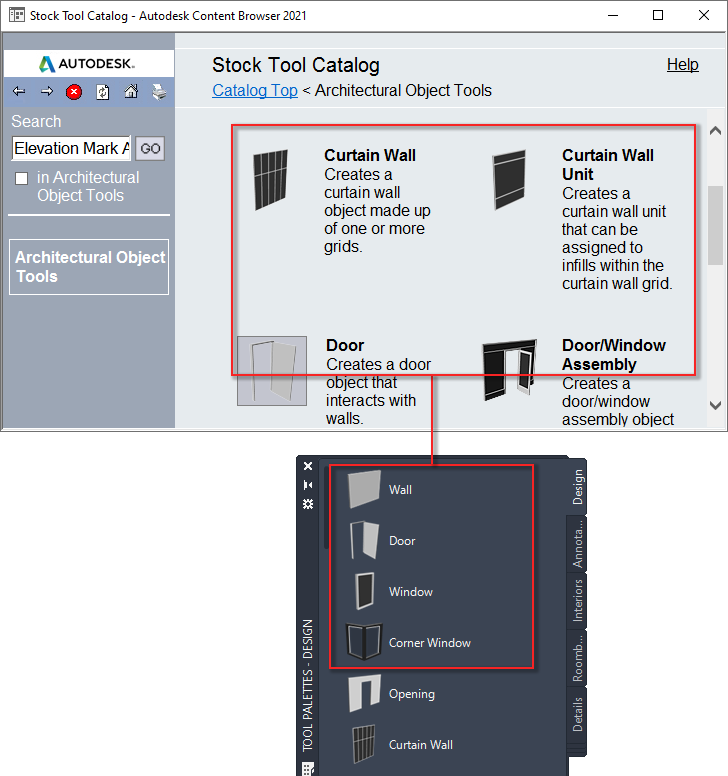 Use this procedure to link a tool from a catalog in the Content Browser to a tool palette in AutoCAD Architecture 2027 toolset.