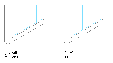 Use this procedure to remove a mullion from the door/window assembly. You can create a mullion definition whose edge width and depth are zero. Adjacent infills expand to fill in the space that was occupied by the mullion. This is an effective way to represent butt glazing.