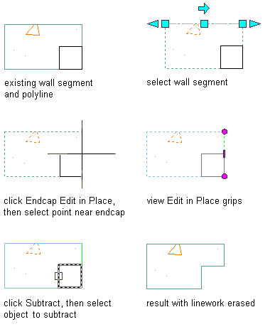 Use this procedure to modify a wall endcap by subtracting a profile from a component. A profile may be any polyline-enclosed area that overlaps a specific component.