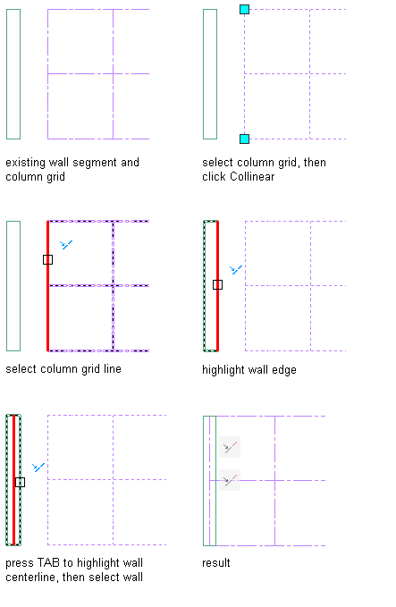 Use a Collinear constraint to align the centerline of a wall with a column grid line.